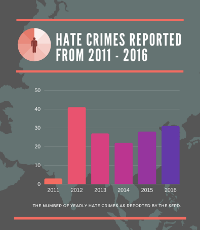 While the 2016 Presidential Election may not have had as big an impact on hate crimes in the Bay Area compared to other states, hate crimes in San Francisco have steadily increased over the past three years.