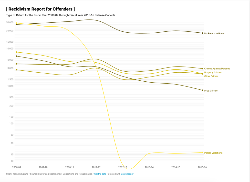 California legislators passed a series of corrections’ reforms to reduce prison overcrowding and recidivism in 2011 and 2014. During the last decade, California’s changes to how it measures recidivism have made it difficult to compare its recidivism rates to other states. However, the Public Policy Institute of California noted that historically, the state has had one of the highest recidivism rates in the nation.